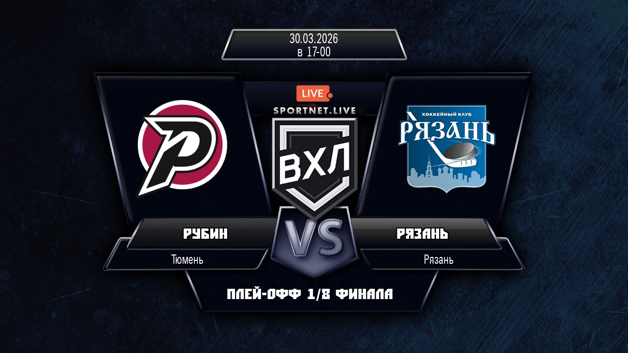 30 марта 2026 года, состоялся хоккейный матч между командой Рубин и командой Рязань, который проходил в рамках чемпионата ВХЛ (1/8 финала).