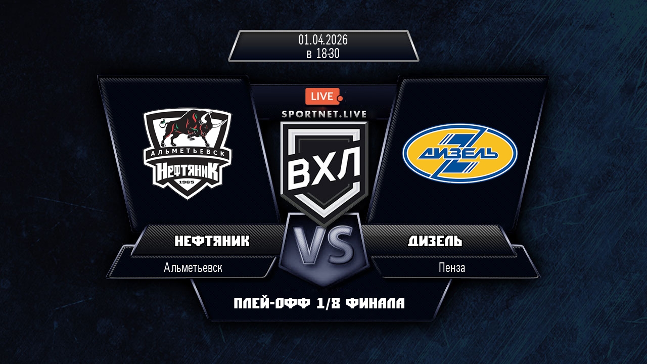 1 апреля 2026 года, состоялся хоккейный матч между командой Нефтяник и командой Дизель, который проходил в рамках чемпионата ВХЛ (1/8 финала).