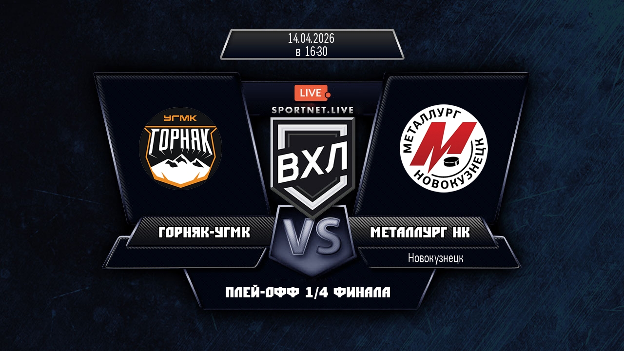 14 апреля 2026 года, состоялся хоккейный матч между командой Горняк-УГМК и командой Металлург Нк, который проходил в рамках чемпионата ВХЛ (1/4 финала).