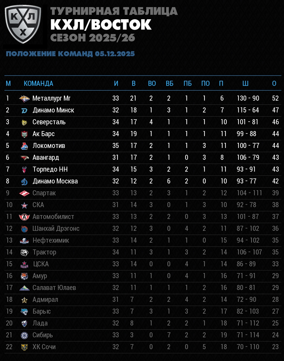 В 19-30 команда «Шанхай Дрэгонс» играет с командой «Торпедо НН». В прошлой встрече между командой Шанхай Дрэгонс и командой Торпедо НН, которая состоялась 22 сентября 2025 года - победу в овертайме со счетом 1:0 одержала команда Шанхай Дрэгонс. В турнирной таблице Западной конференции КХЛ команда Шанхай Дрэгонс занимает 8-е место, а команда Торпедо НН занимает 4-е место.