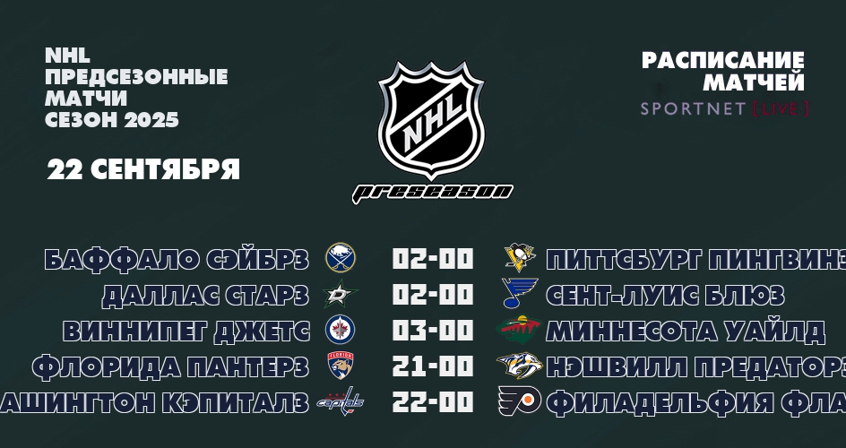 Календарь матчей предсезонки NHL