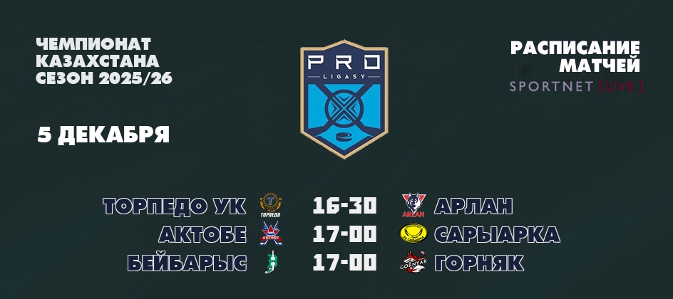 В 16-30 «Торпедо УК» в домашнем матче сразится с хоккейным клубом «Арлан». В прошлой встрече между командой Арлан и командой Торпедо УК, которая состоялась 8 сентября 2025 года - победу в основное время со счетом 9:0 одержала команда Торпедо УК. В турнирной таблице Чемпионата Казахстана команда Торпедо УК занимает 2-е место, а команда Арлан занимает 3-е место.