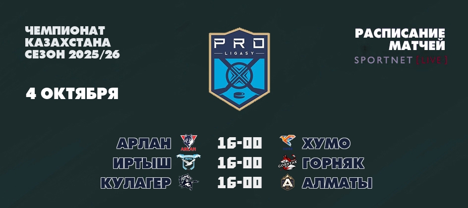 В 17-00 «Арлан» в домашнем матче попробует взять верх над ХК «Горняк». В прошлой встрече между командой Арлан и командой Горняк, которая состоялась 6 ноября 2025 года - победу в основное время со счетом 2:1 одержала команда Арлан. В турнирной таблице Чемпионата Казахстана команда Арлан занимает 3-е место, а команда Горняк занимает 8-е место.