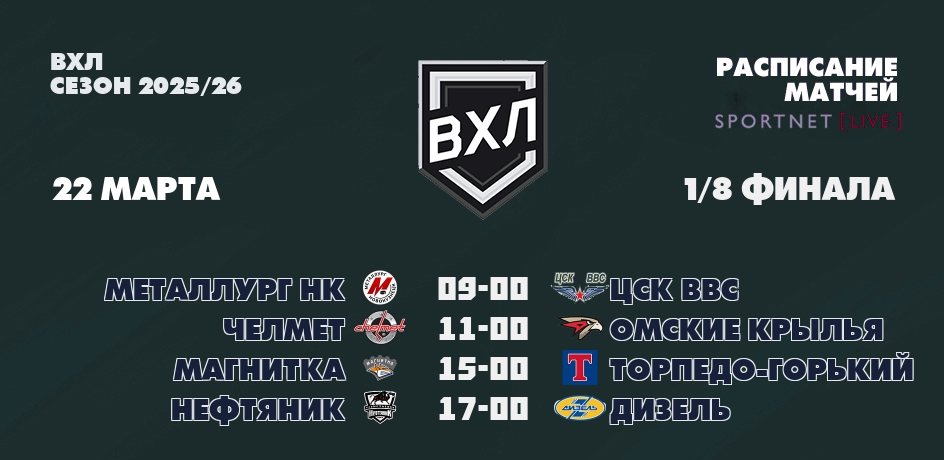 ВХЛ 2025/26 - календарь матчей