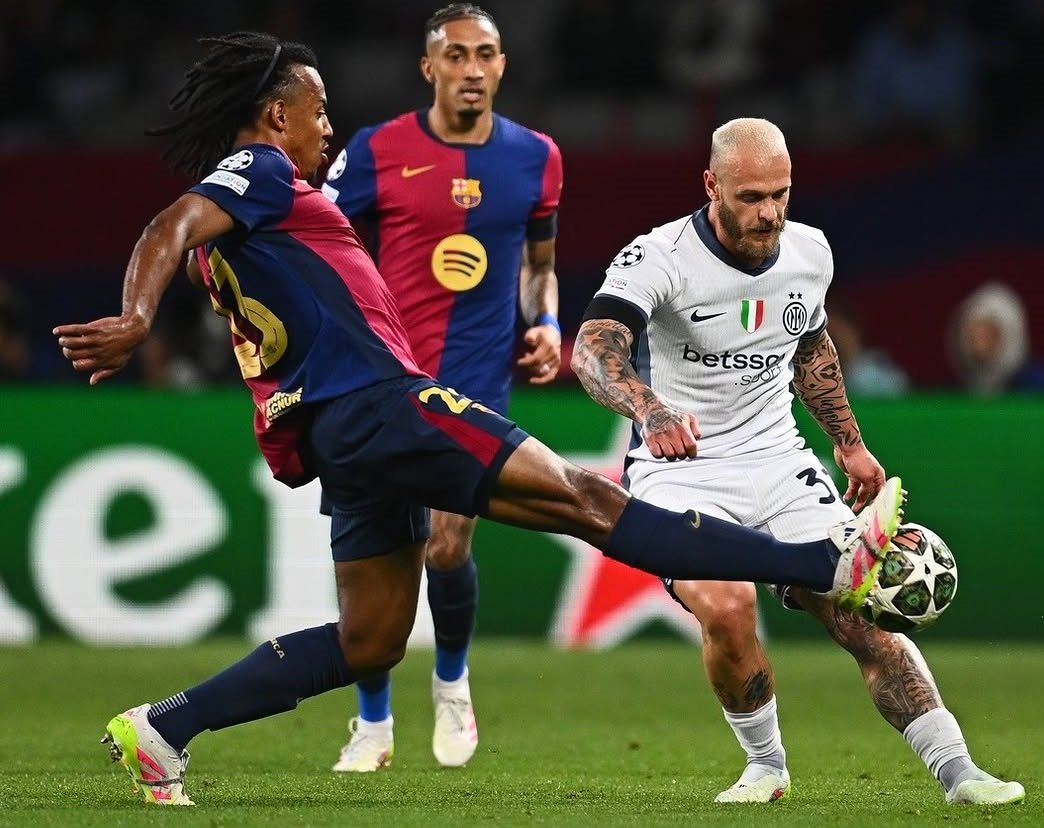 Игра прошла в Барселоне на стадионе "Олимпик Льюис Компанис". В составе гостей отличились Маркус Тюрам (1 мин.) и оформивший дубль Дензел Думфрис (21 и 64 мин.). У хозяев голы забили Ламин Ямаль (24 мин.) и Ферран Торрес (38 мин.). Кроме того, мяч в свои ворота отправил вратарь "Интера" Ян Зоммер.Ответный матч пройдёт 6 мая в Милане на стадионе "Сан-Сиро". Начало встречи запланировано на 22:00 по московскому времени.Победитель этой пары выйдет в финал, где сыграет с сильнейшим из противостояния лондонского "Арсенала" и французского "ПСЖ" (после первого матча со счётом 1:0 впереди "ПСЖ").