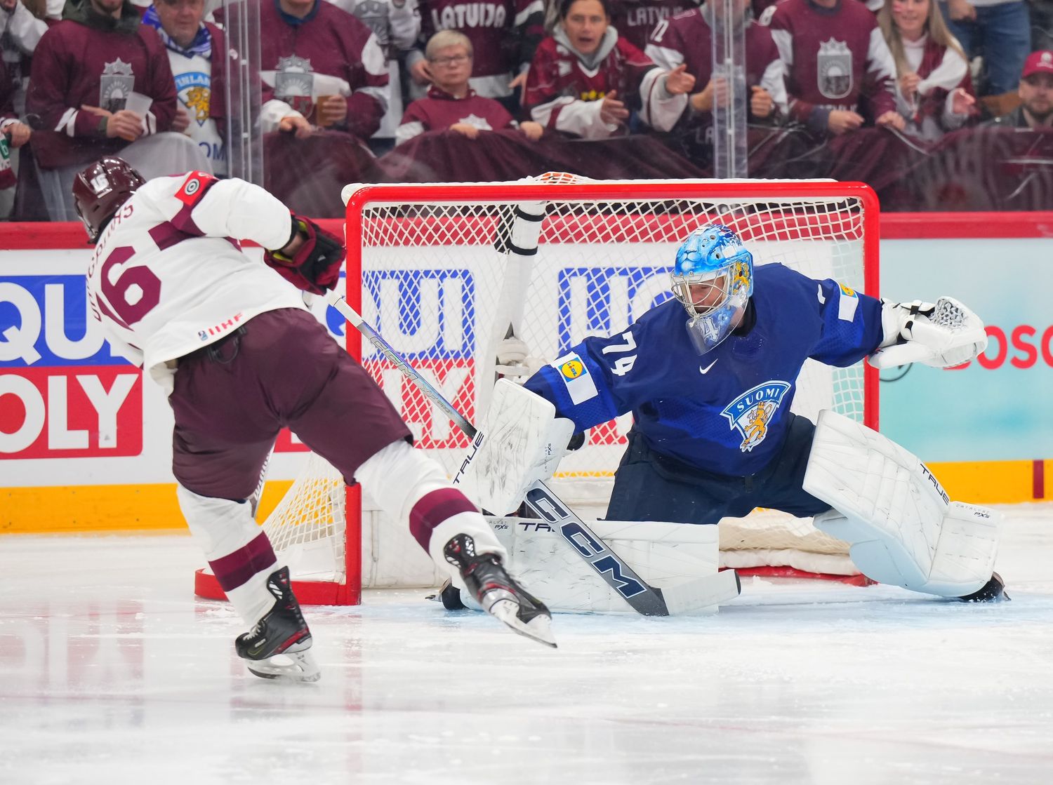 В очередном матче в рамках группового раунда чемпионата мира в элитном дивизионе Латвия уступила Финляндии.