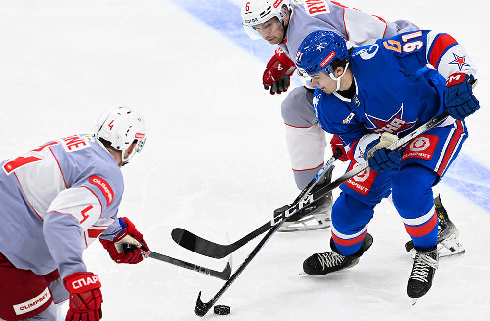 Московский "Спартак" одержал победу в гостевом матче регулярного чемпионата КХЛ над петербургским СКА со счетом 2:1.