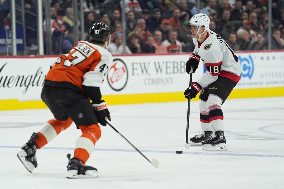 В напряженном поединке регулярного чемпионата НХЛ "Филадельфия Флайерз" уступила "Оттаве Сенаторз" в овертайме со счетом 1:2.