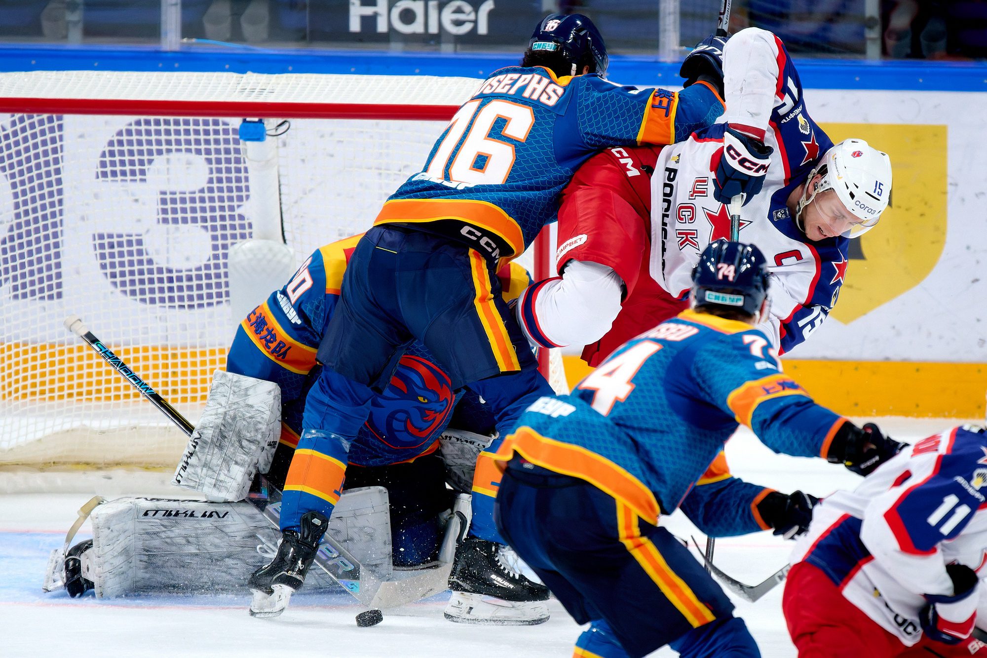 В напряженном поединке регулярного чемпионата КХЛ, который проходил в овертайме, хоккеисты "Шанхай Дрэгонс" уступили московскому ЦСКА со счетом 1:2.