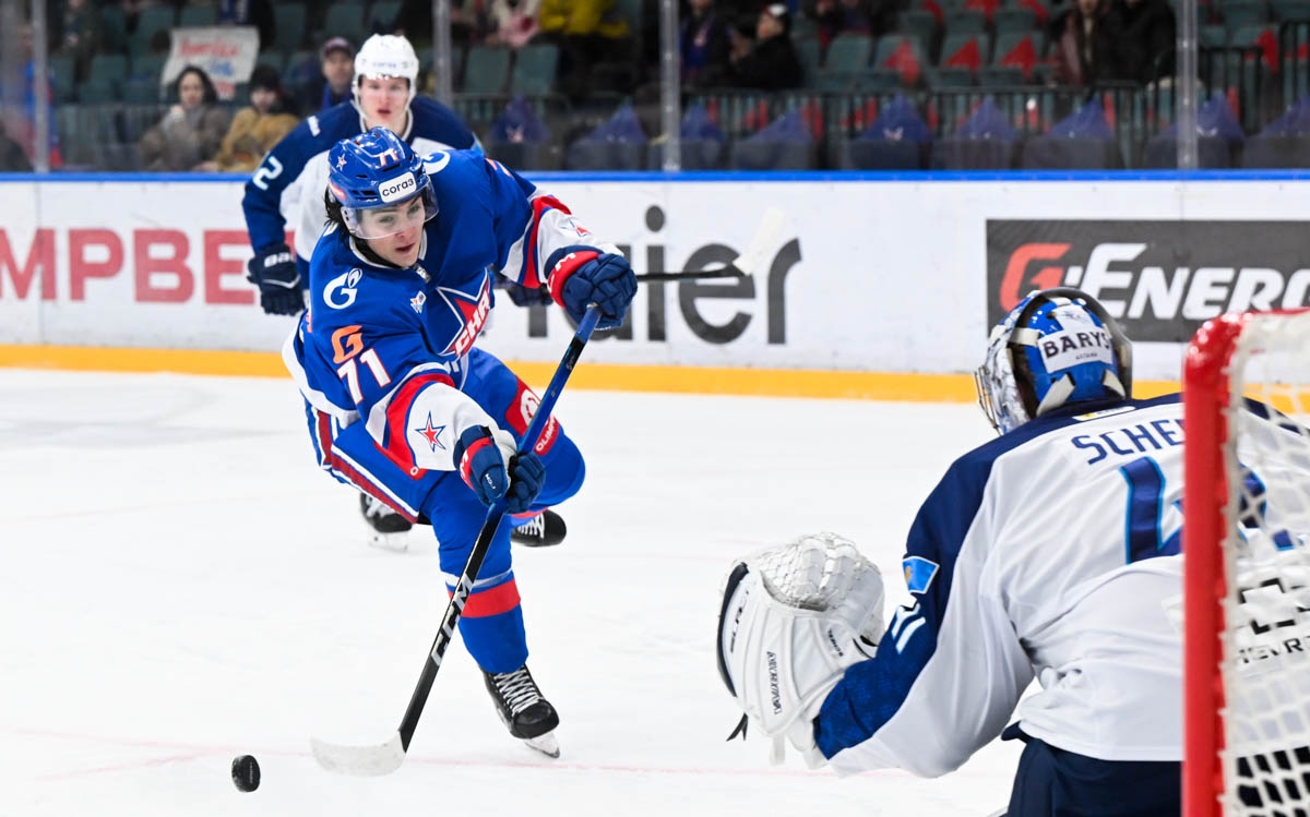 Питерский СКА одержал уверенную победу над астанинским "Барысом" в матче регулярного чемпионата КХЛ, отправив в ворота соперника семь безответных шайб.