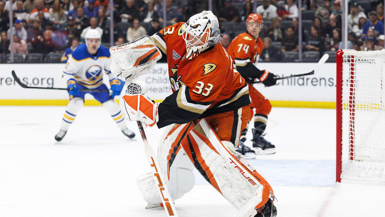 Хоккейный матч регулярного чемпионата НХЛ между "Анахайм Дакс" и "Баффало Сейбрз" завершился напряженной победой хозяев в овертайме.