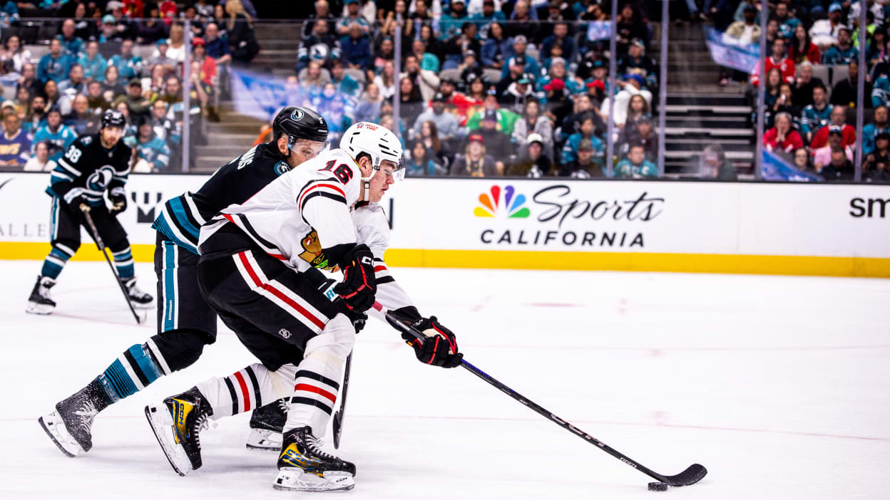 В напряженной встрече регулярного чемпионата НХЛ "Сан-Хосе Шаркс" одержал победу над "Чикаго Блэкхокс" со счетом 3:2.